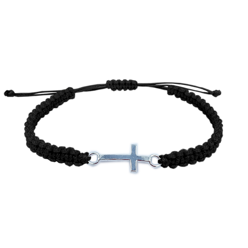 Bratara snur negru impletit manual personalizata cruciulita argint 9354100 Dras