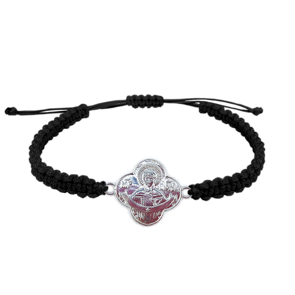 Bratara snur negru impletit manual personalizata medalion Maica Domnului argint 4215160 Dras
