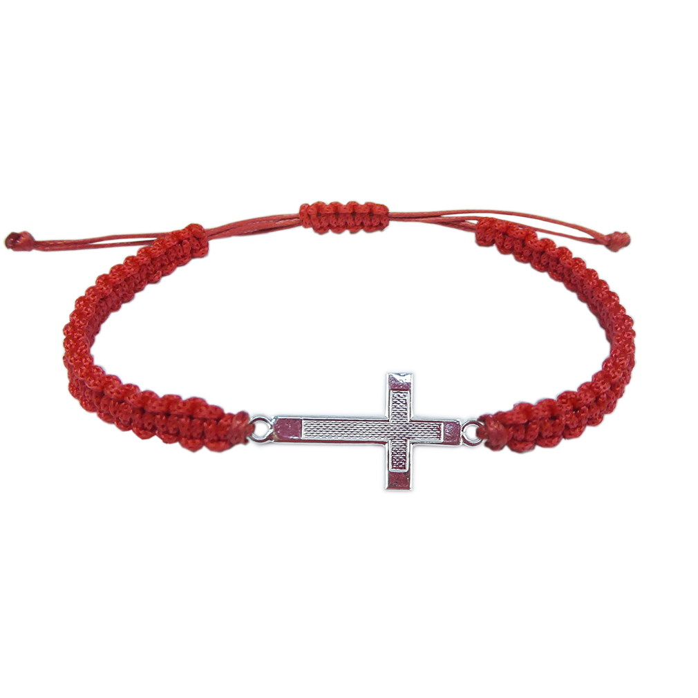 Bratara snur rosu impletit manual personalizata cruciulita argint 4108190 Dras