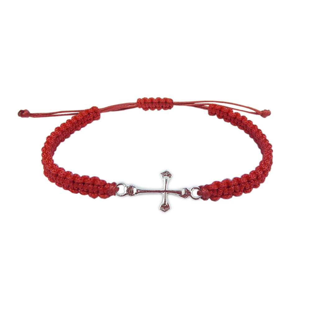 Bratara snur rosu impletit manual personalizata cruciulita argint 4502070 Dras
