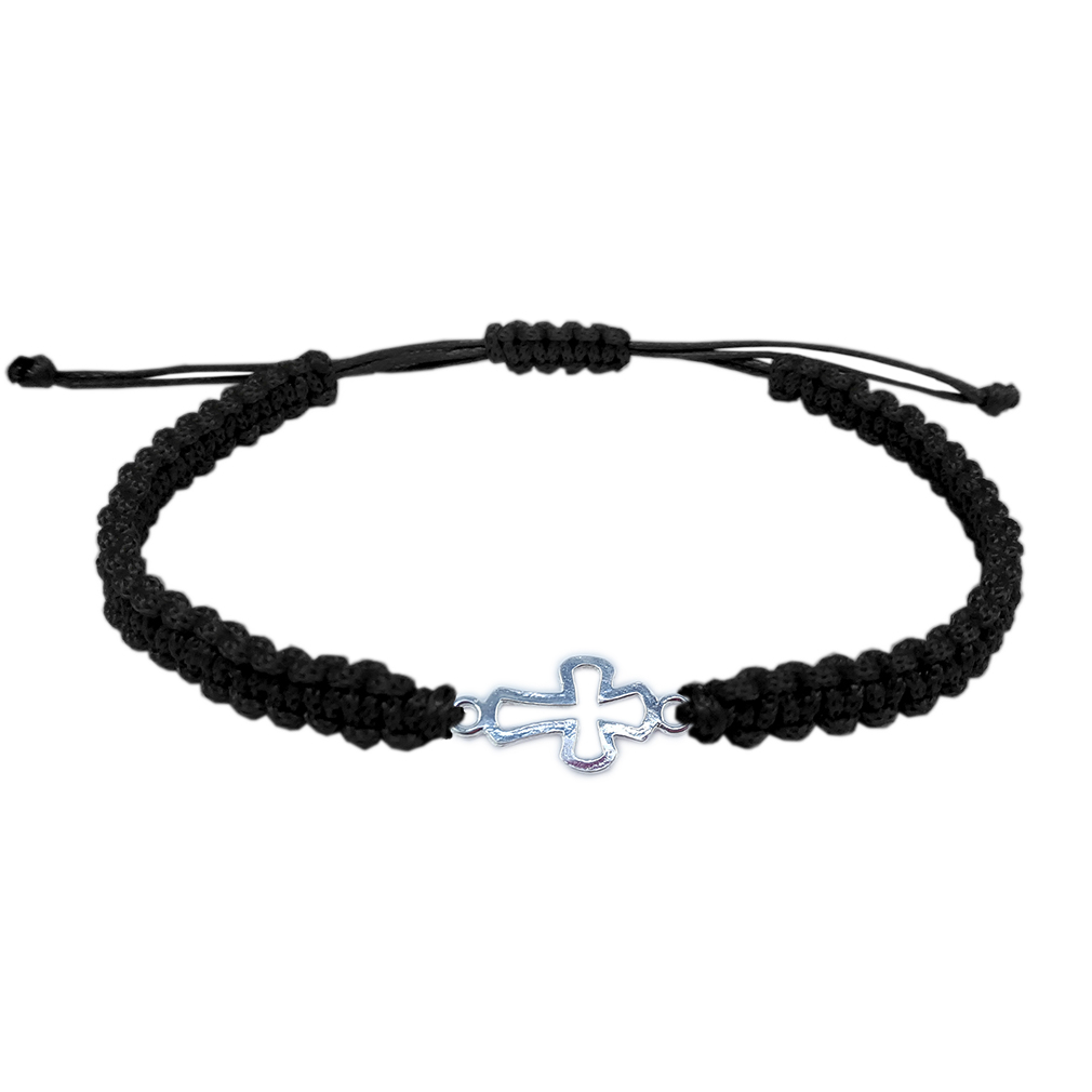 Bratara snur negru impletit manual personalizata cruciulita argint 4521070 Dras