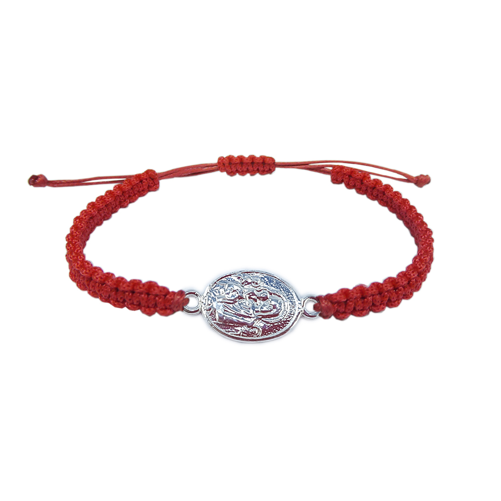 Bratara snur rosu impletit manual personalizata medalion Maica Domnului si pruncul Iisus argint 4372150 Dras