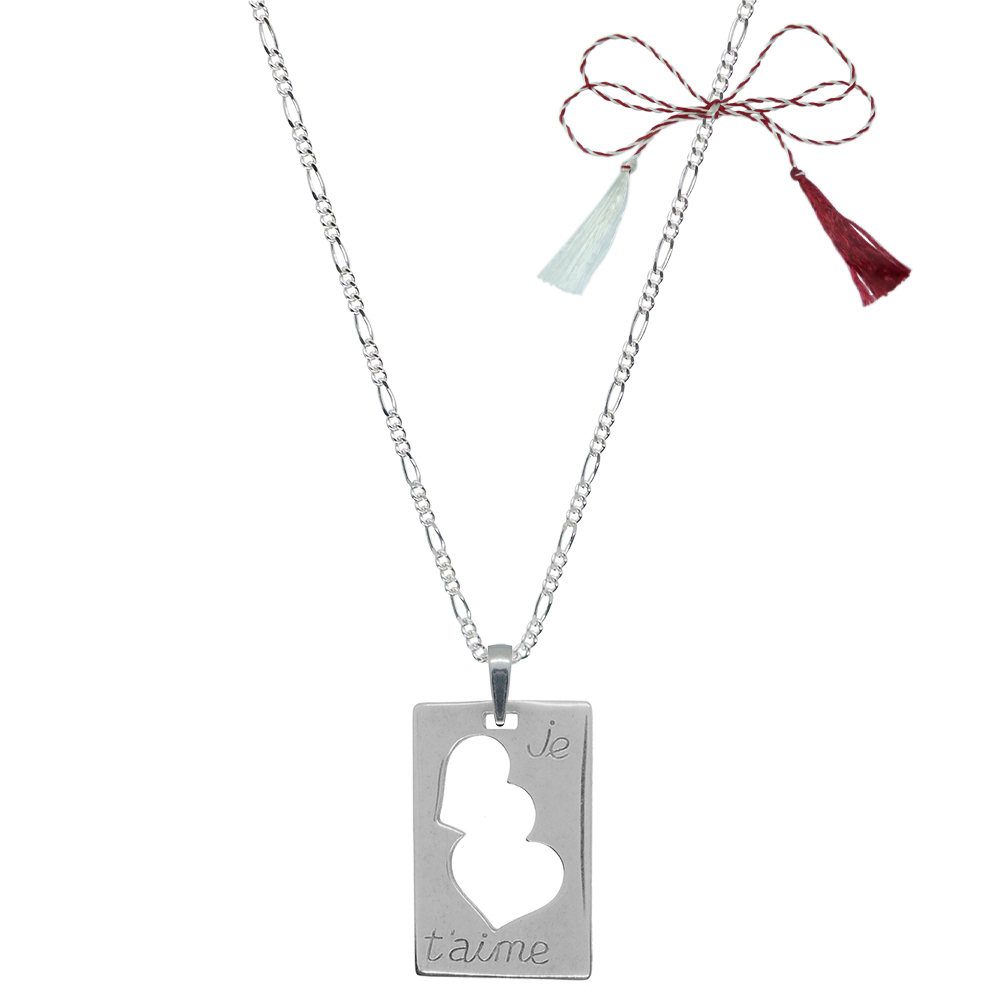 Martisor Lantisor argint personalizat pandantiv Placuta Inimioare Je t'aime 7825FIG31700 Dras. Compozitie:Argint 740. Cutie de bijuterii cadou.
