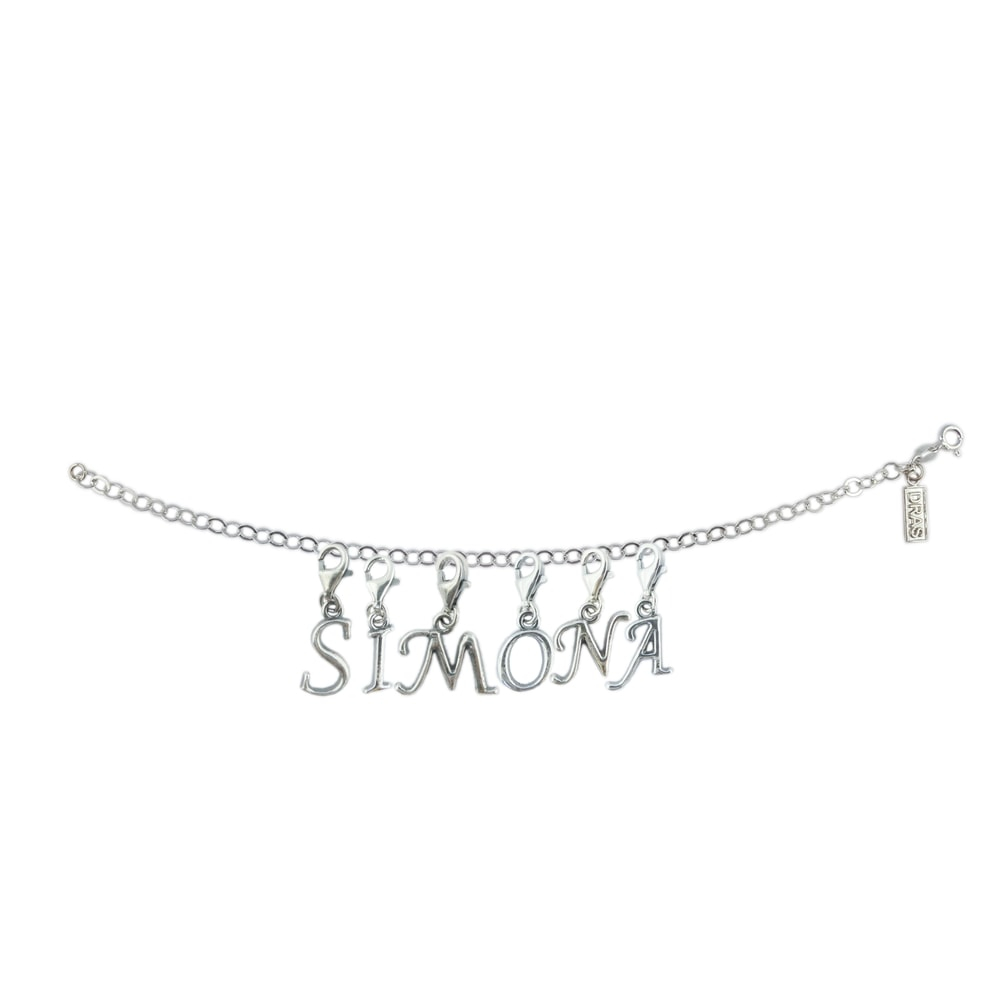 Bratara argint personalizata nume Simona pandantive litere argint carabina reglabila GIOTTO1000 Dras