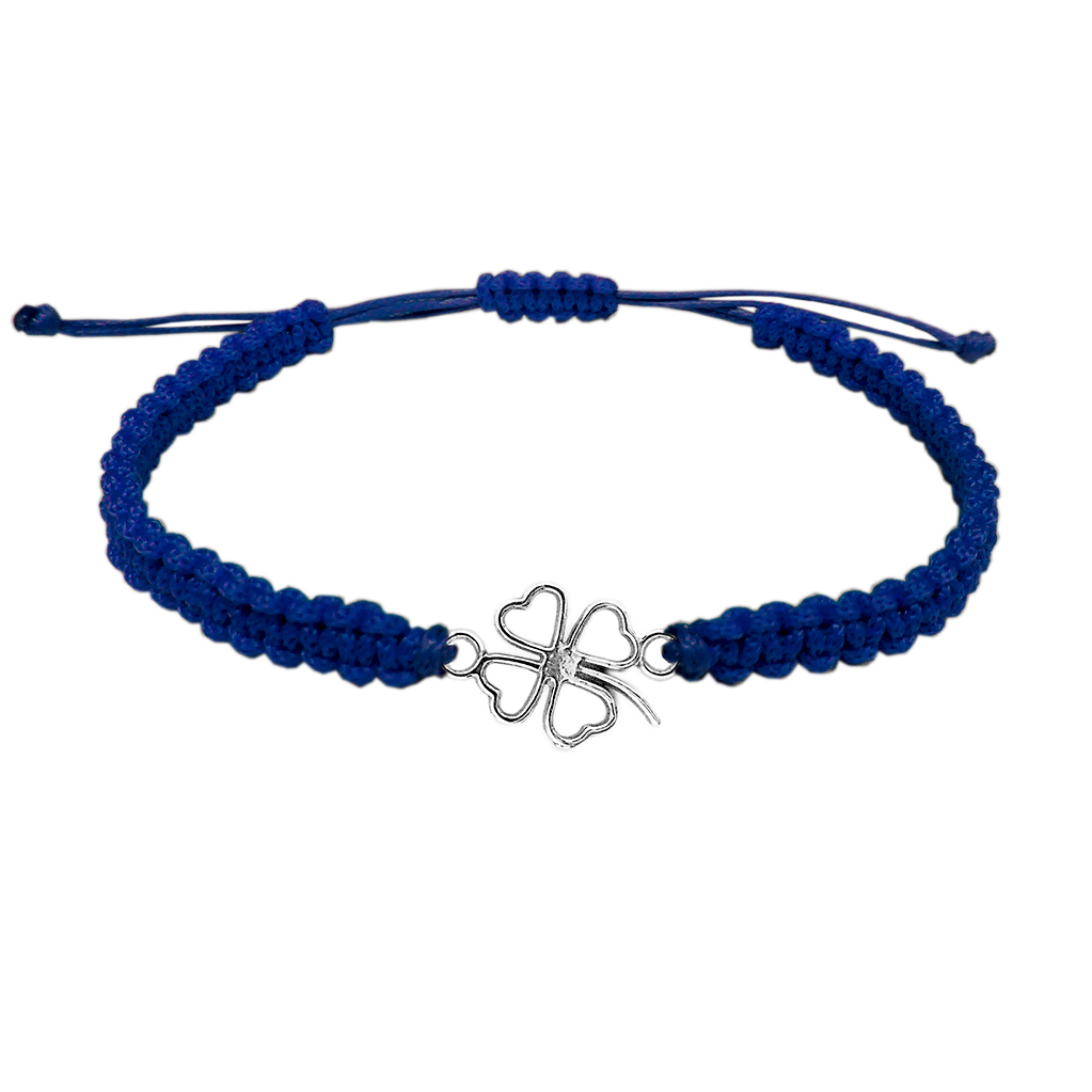 Bratara snur albastru impletit manual personalizata Trifoi argint 6434100 Dras