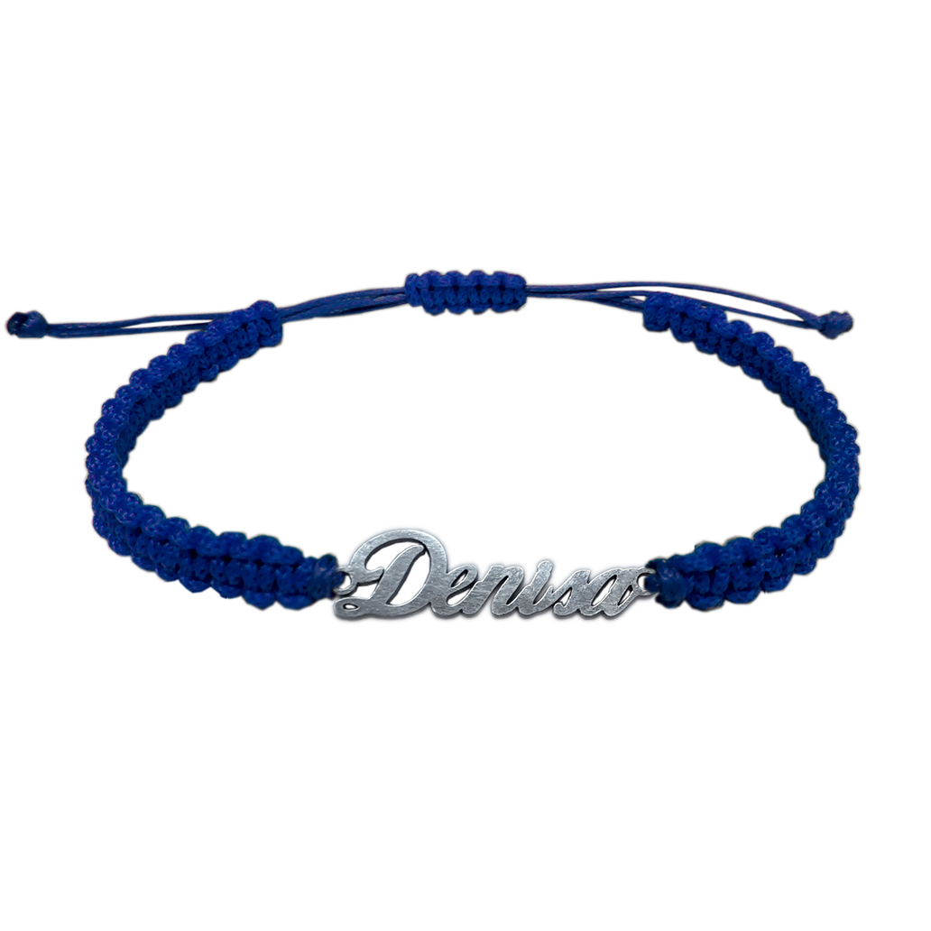 Bratara snur albastru impletit manual personalizata nume Denisa argint 9405100 Dras