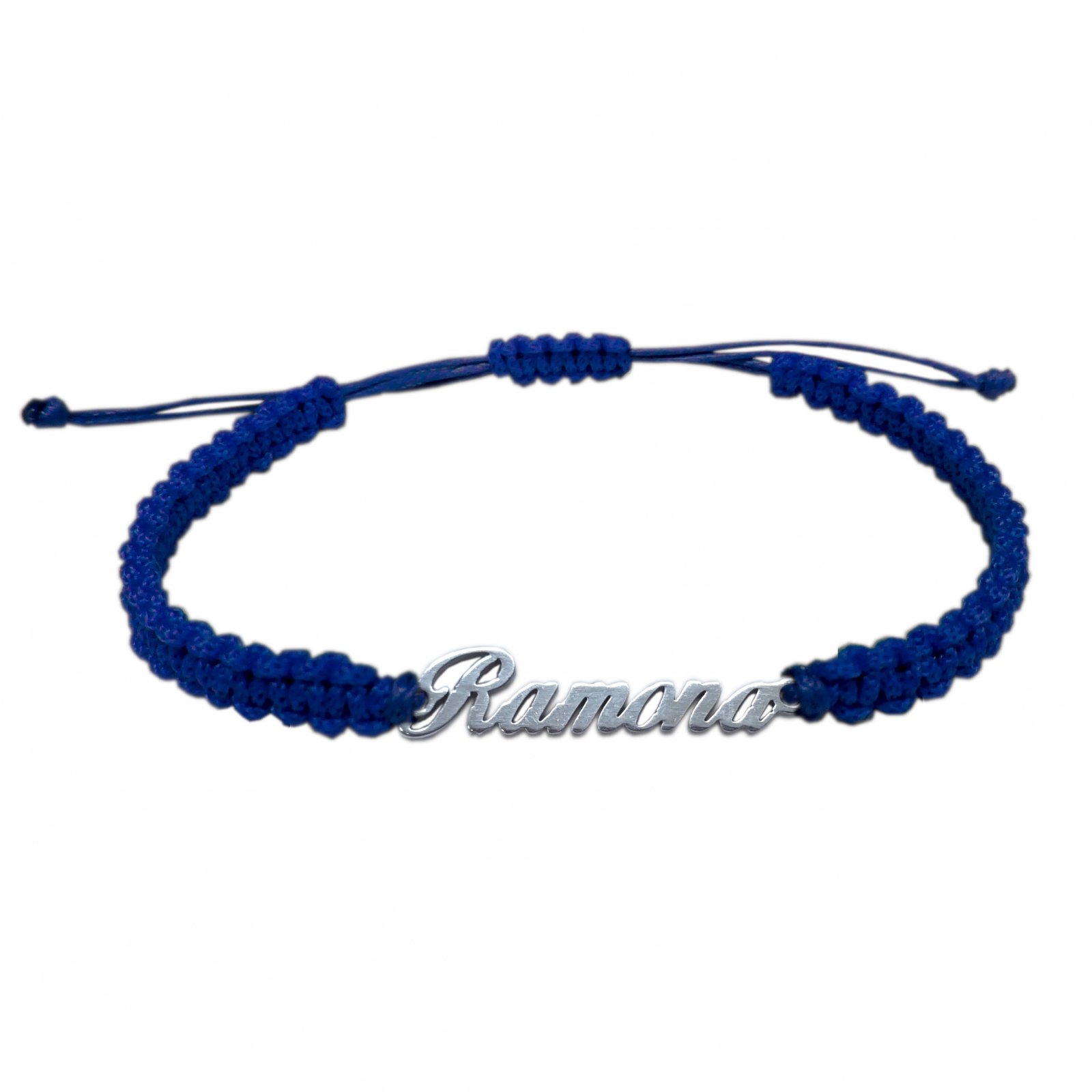 Bratara snur albastru impletit manual personalizata nume Ramona argint 9423100 Dras
