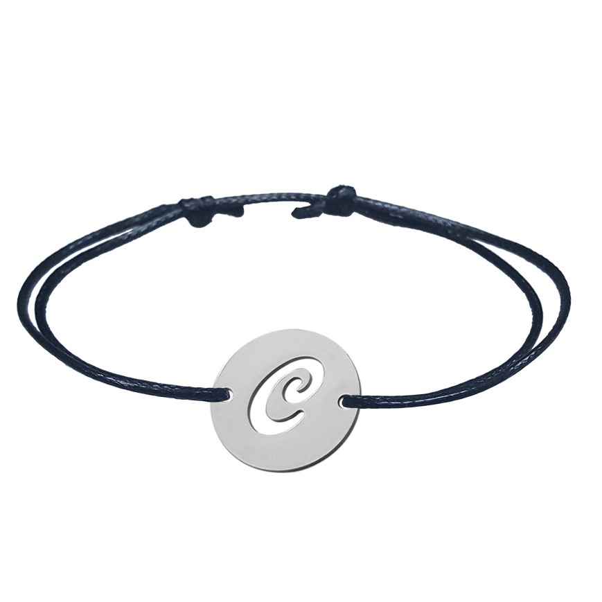 Bratara snur negru personalizata banut decupat argint Litera C 9474140 Dras