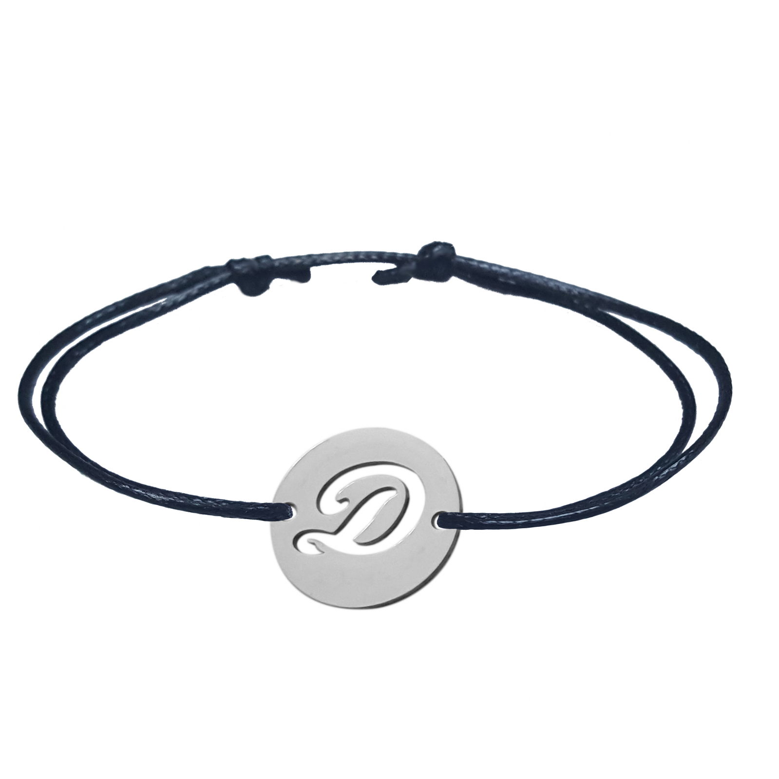 Bratara snur negru personalizata banut decupat argint Litera D 9475140 Dras