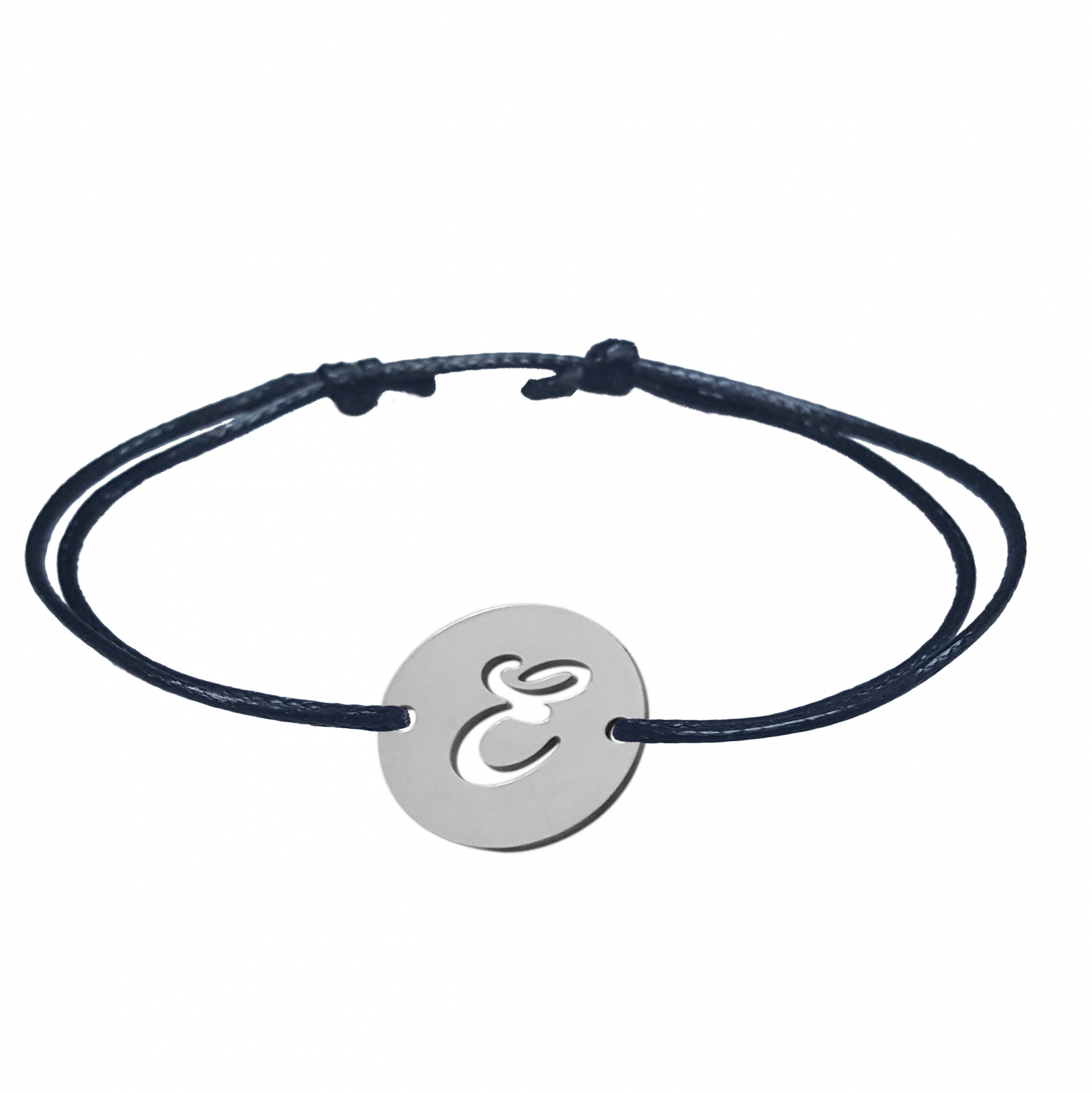 Bratara snur negru personalizata banut decupat argint Litera E 9476140 Dras