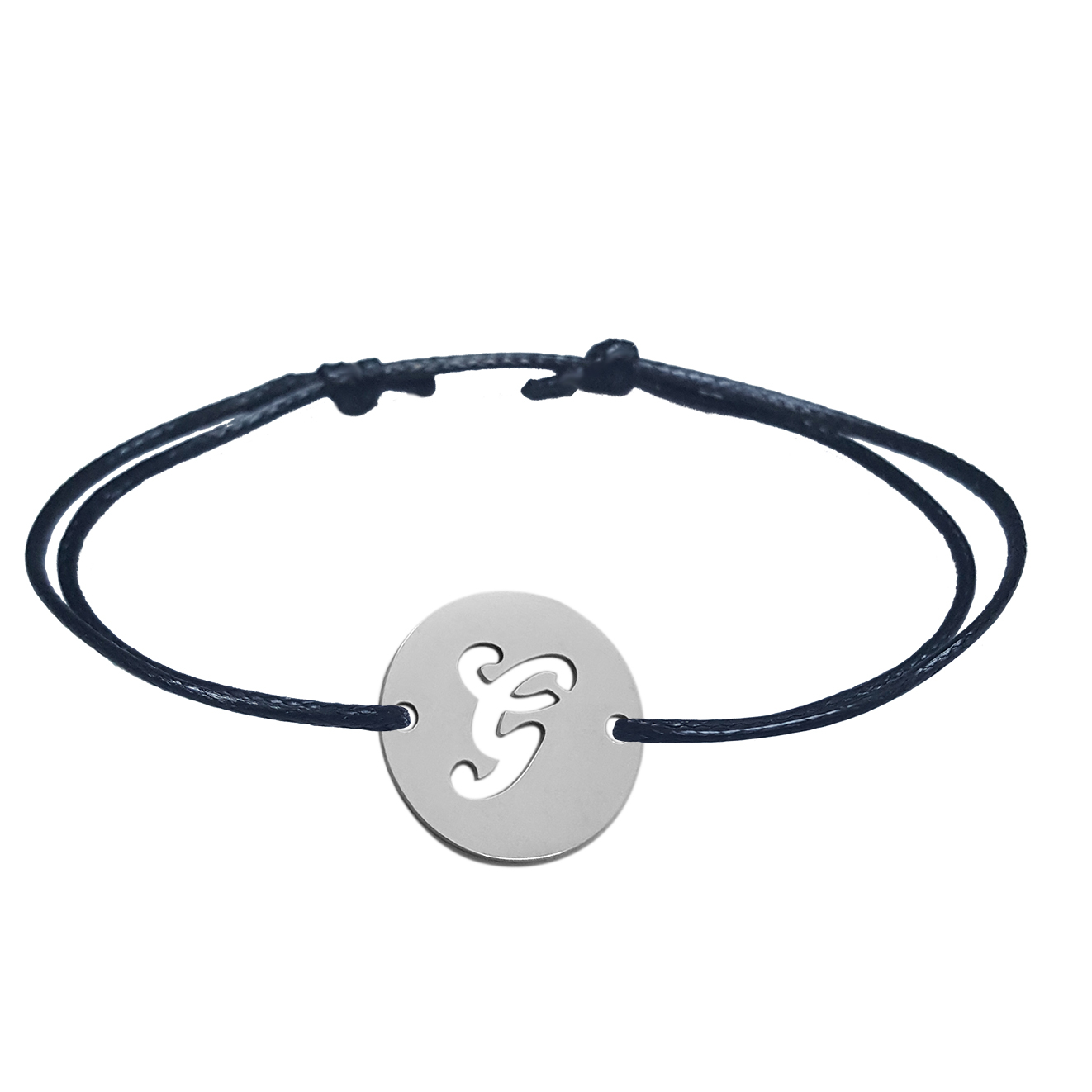 Bratara snur negru personalizata banut decupat argint Litera G 9478140 Dras