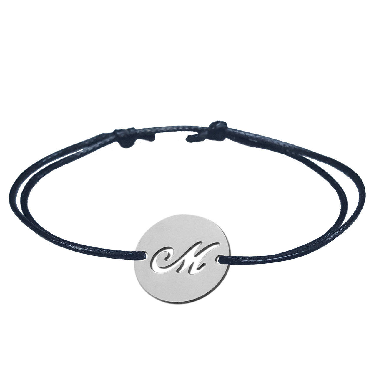 Bratara snur negru personalizata banut decupat argint Litera M 9482140 Dras