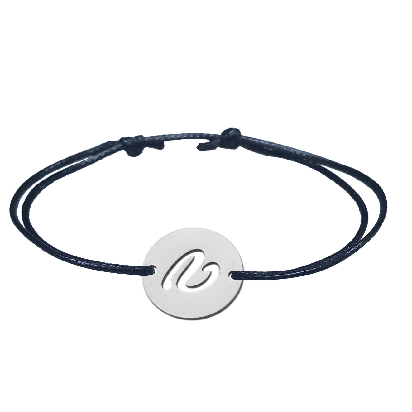 Bratara snur negru personalizata banut decupat argint Litera V 9489140 Dras