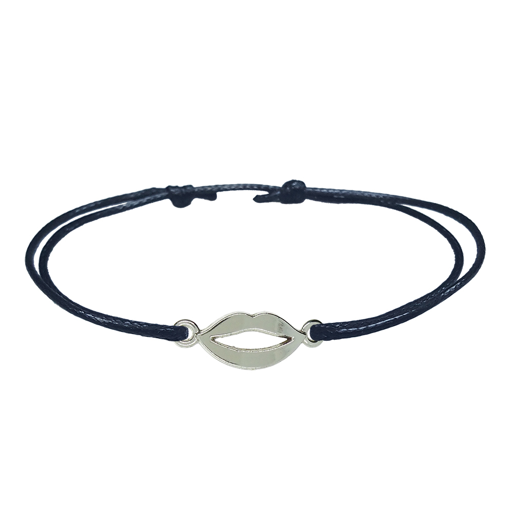 Bratara snur negru personalizata Buze argint 10058180 Dras