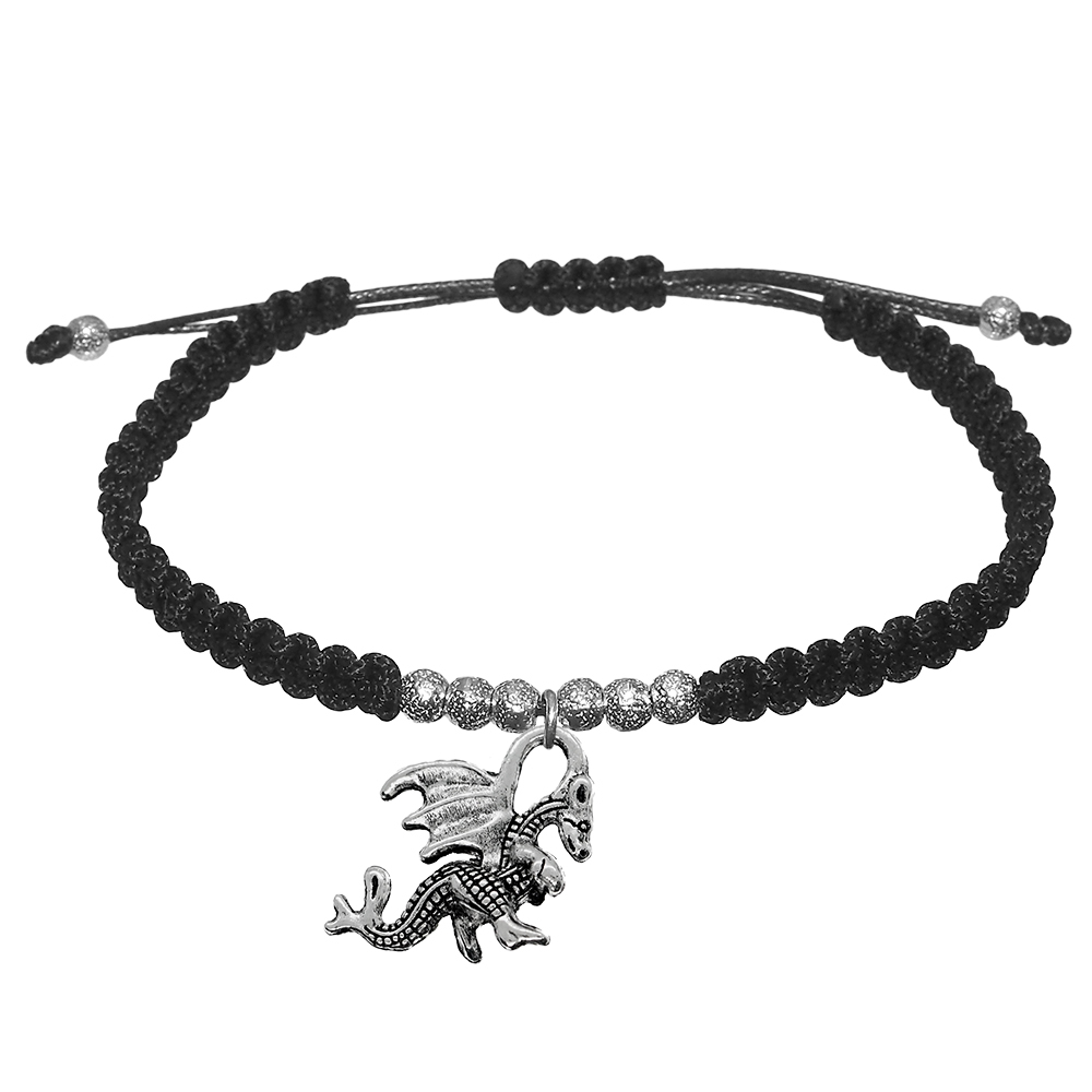 Bratara snur negru impletita manual personalizata Dragon argint 9881370 Dras