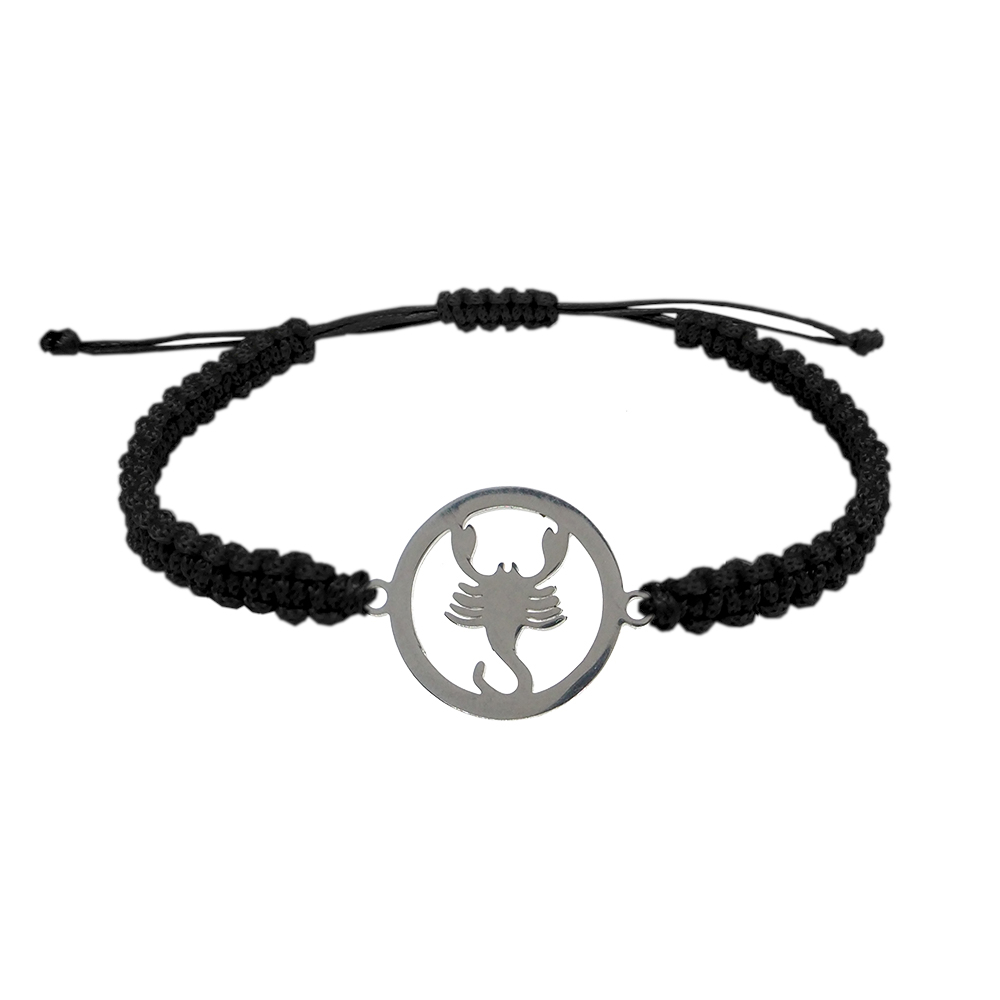Bratara snur negru impletita manual personalizata zodie Scorpion argint zodiac european 9781160 Dras