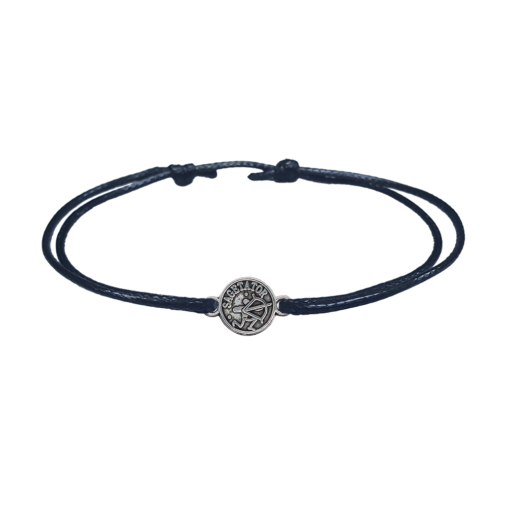 Bratara snur negru personalizata zodie Sagetator argint zodiac european 9793100 Dras