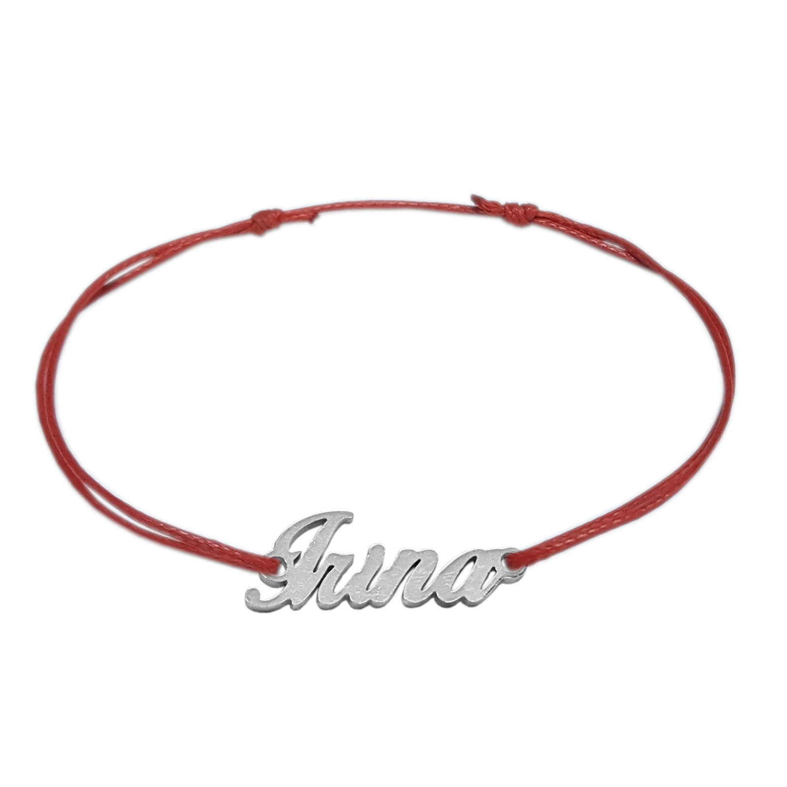 Martisor Bratara snur rosu personalizata nume Irina argint 9452100 Dras. Compozitie: Argint 740. Cutie de bijuterii cadou.
