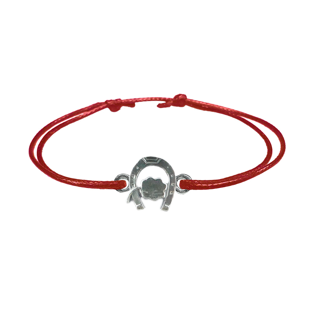 Martisor Bratara snur rosu personalizata Potcoava cu trifoi argint 4535100 Dras. Compozitie: Argint 740. Cutie de bijuterii cadou.
